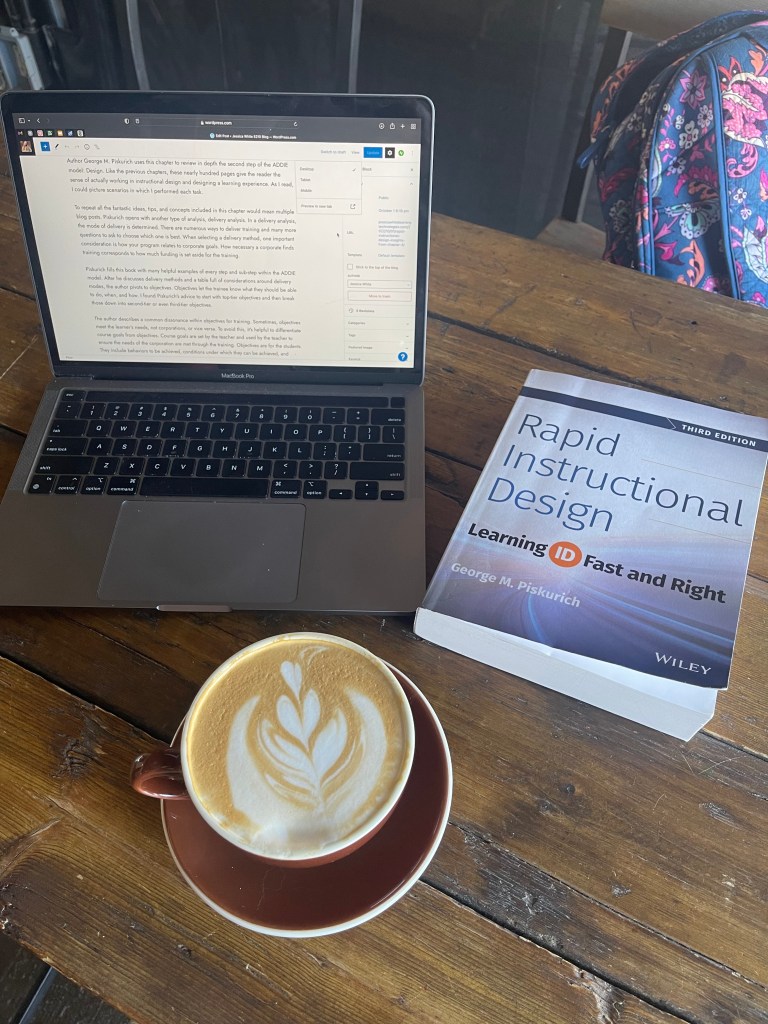 In Chapter 5, Doing it Right: Development of Rapid Instructional Design, author George Piskurich offers a how-to guide for developing a training session or learning experience. Development is an exciting stage because you can see your learning experience as a whole by the end. It is complete, but that job isn’t done yet. It will need to be implemented and evaluated, then eventually, improved.